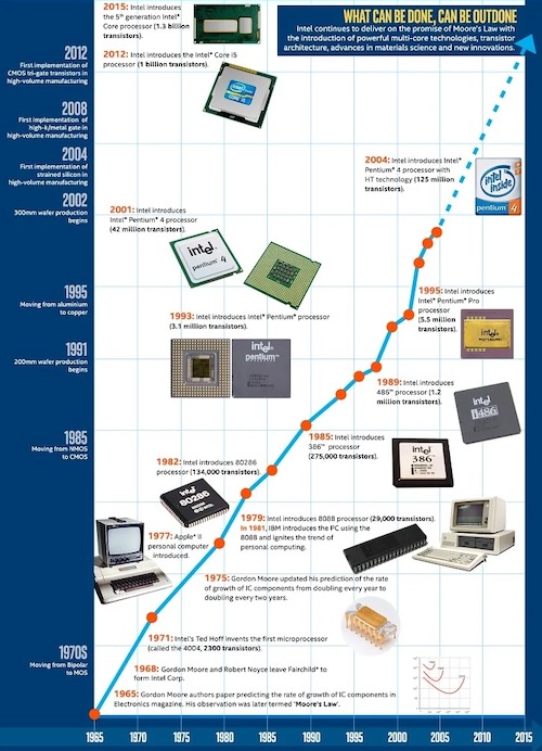 Ngày 15/11/1971, Intel công bố 4004 bộ vi xử lý thương mại đầu tiên trên thế giới với giá 60 USD. Con chip chứa khoảng 2.250 transistor chạy ở tần số 740 kHz, nhưng ý nghĩa của nó vượt xa thông số kỹ thuật. Lần đầu tiên trong lịch sử có một “CPU hoàn chỉnh nằm trong một con chip”, có thể “tái lập trình cho nhiều mục đích khác nhau”, và không bị giới hạn bởi một thiết bị cụ thể.